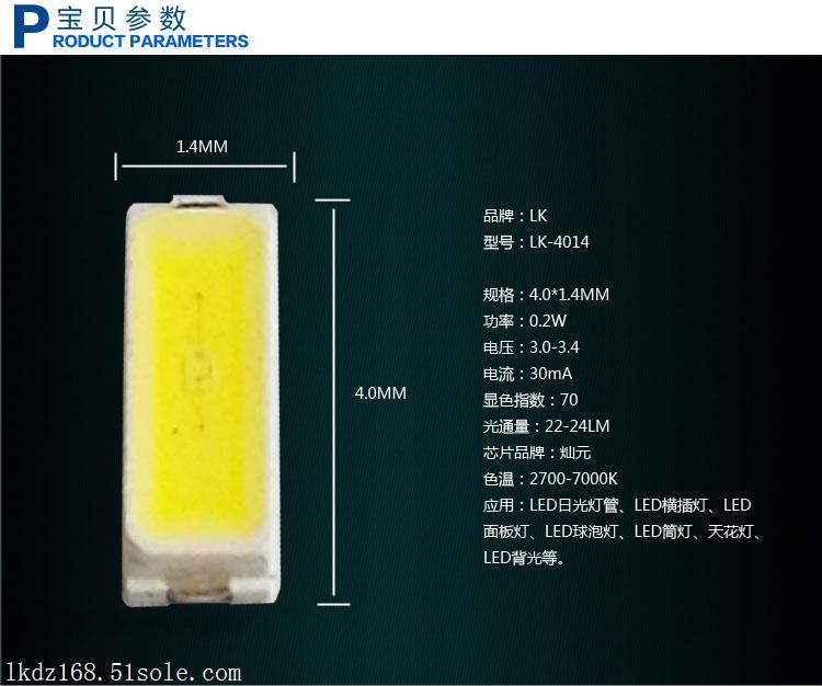(1)高亮度:单个0.2w4014LED贴片灯珠的亮度可以高达:22lm。